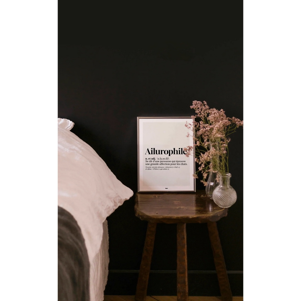 Voici une manière originale d’enrichir votre intérieur (et votre connaissance), si vous êtes amoureux·se des mots jolis. Issue de la nouvelle collection typographique dédiée aux définitions de mots rares et poétiques, cette affiche a un design hyper minimaliste pour une mise en valeur maximale du mot et de sa signification.