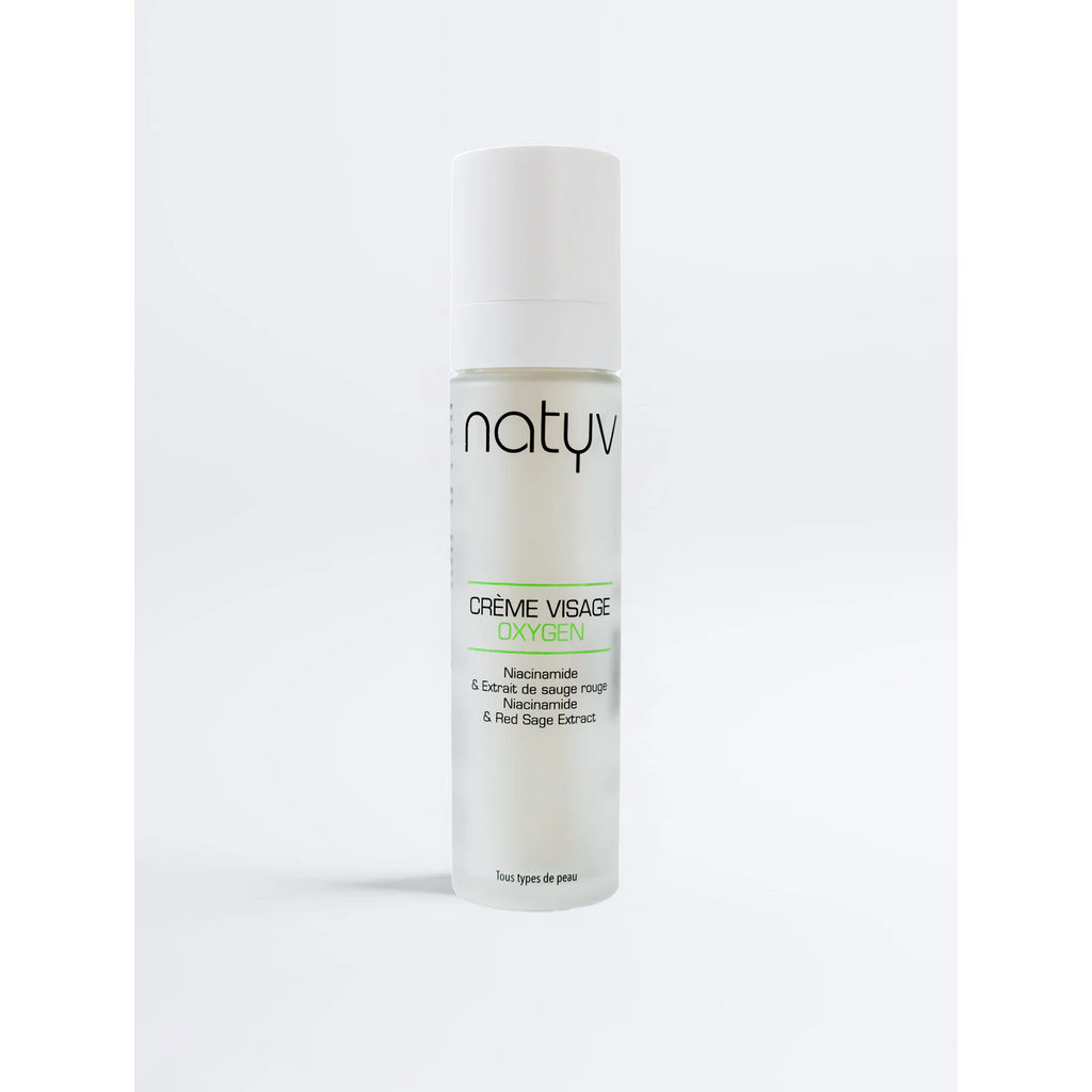 La Crème Visage OXYGEN est un soin à 99,1 % d’ingrédients naturels et 24 % bio, conçu pour hydrater intensément, unifier le teint et améliorer l’élasticité de la peau, tout en respectant les peaux sensibles.