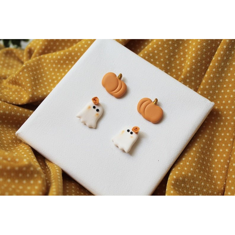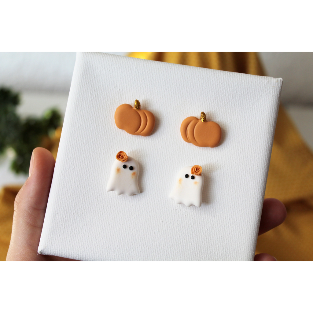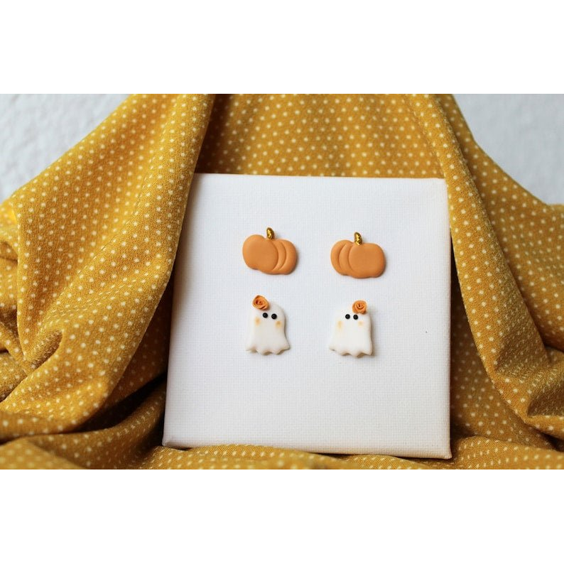 Duo clous d'oreilles Citrouille - Fantôme