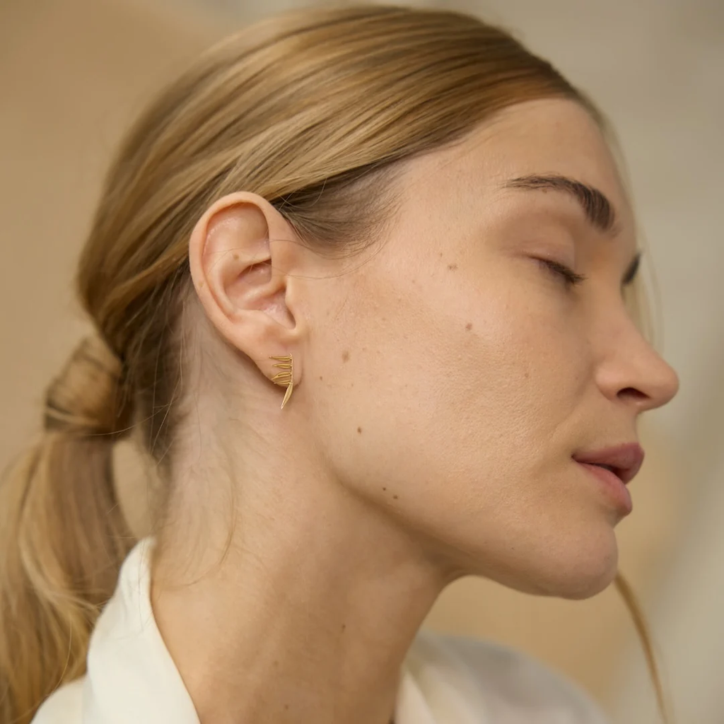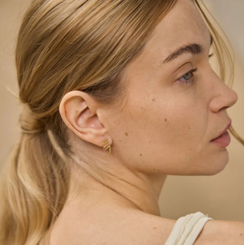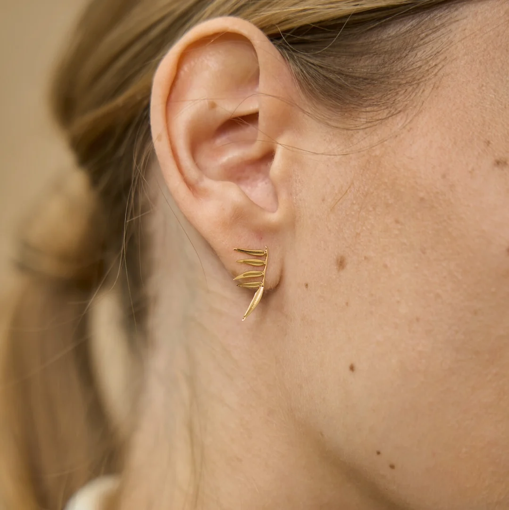 Mini puces finement découpées qui imitent le feuillage ciselé de l'arbuste appelé Sorbaria Sorbifolia. En laiton doré à l'or fin. Des puces délicates et très légères, originales et très féminines.