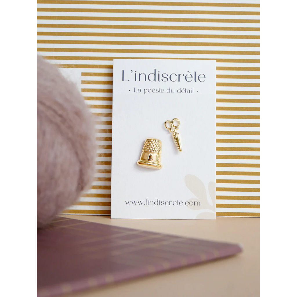 Deux précieux pin’s pour célébrer votre savoir-faire. Le dé à coudre et la paire de ciseaux forment un duo complice pour les amoureux de couture.