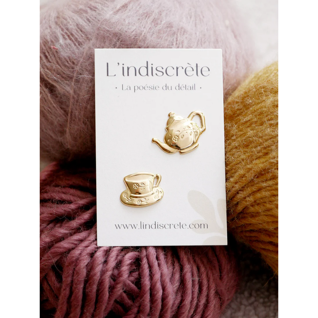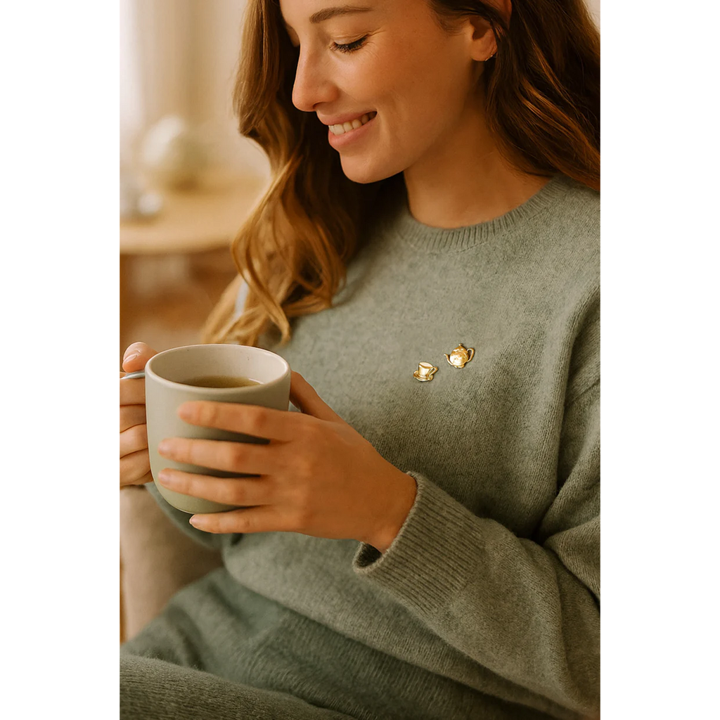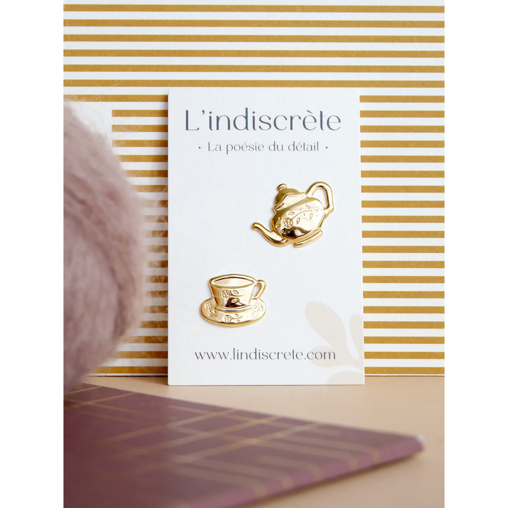 Tea time, deux petits pin’s comme une pause délicate à emporter partout. Dorés et raffinés, ce duo célèbre le charme intemporel du thé.