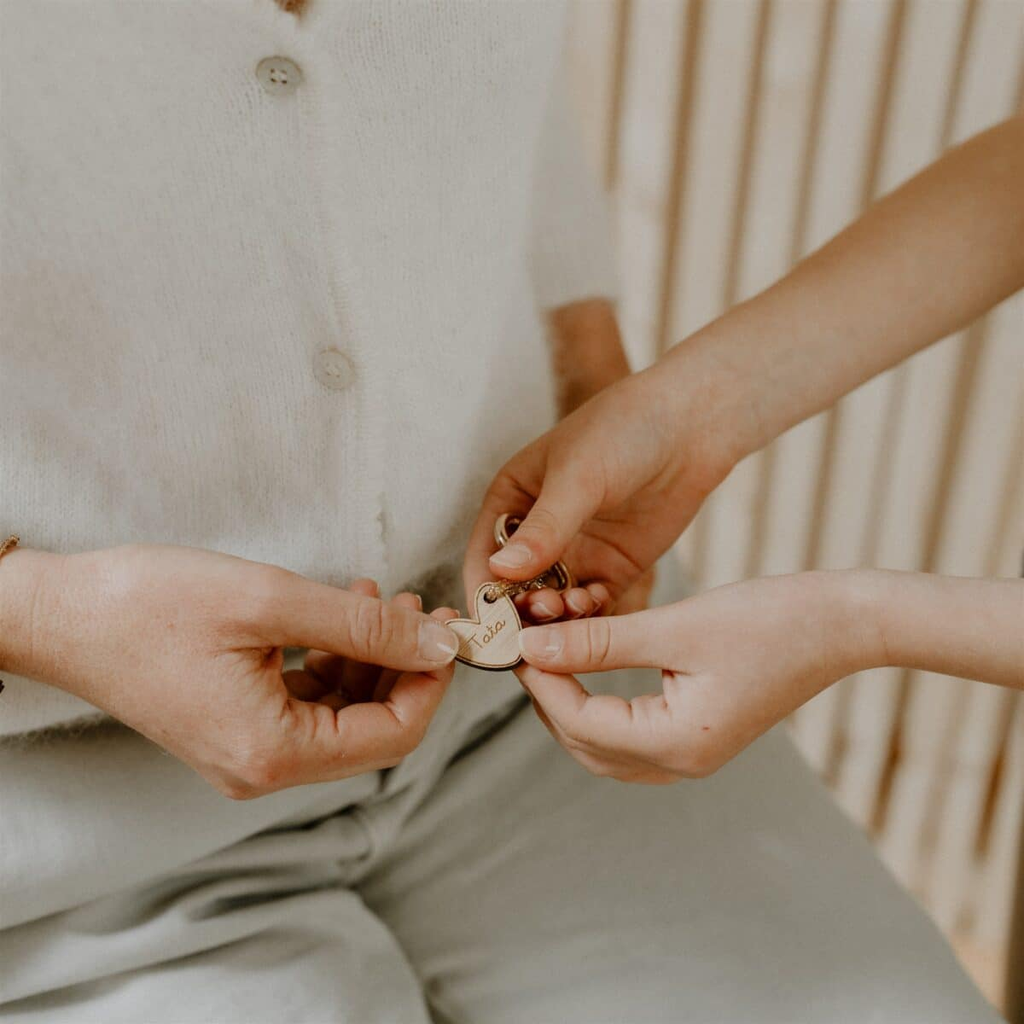 Porte-clés en bois - Coeur Tata