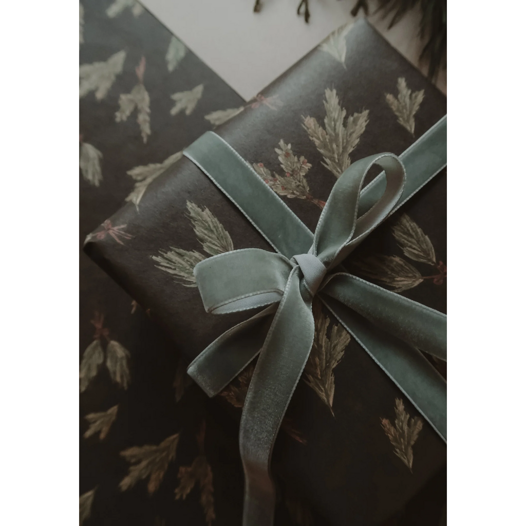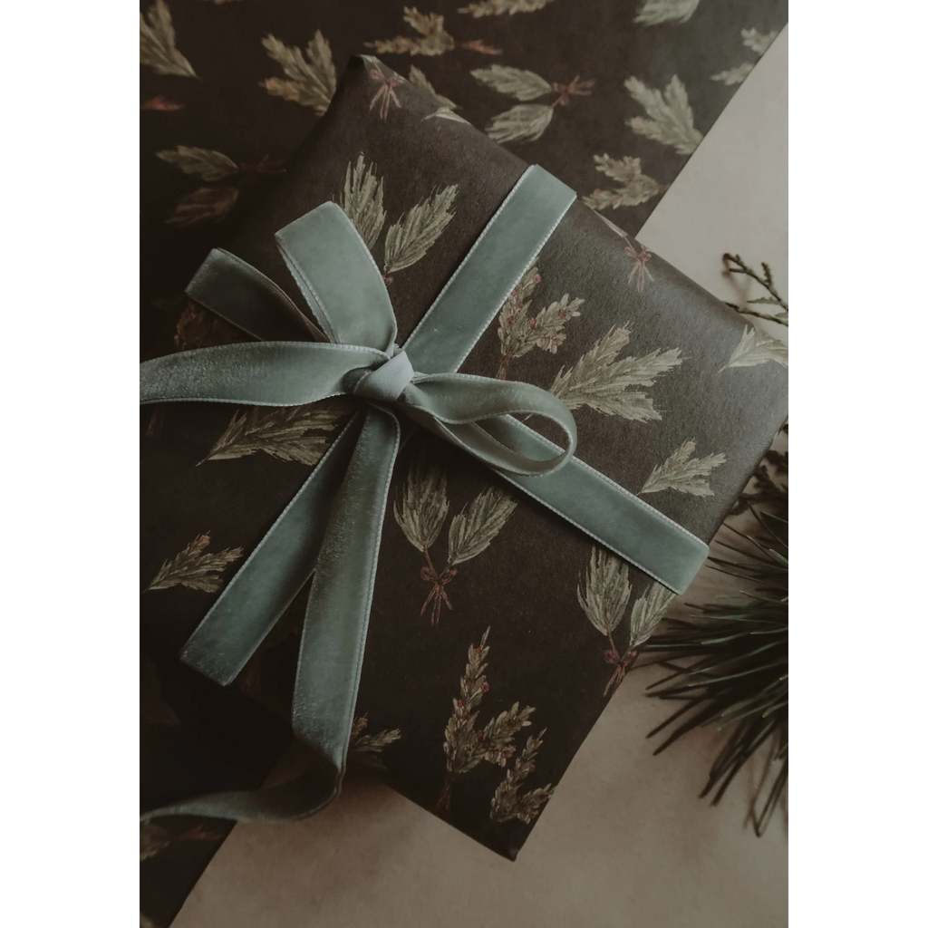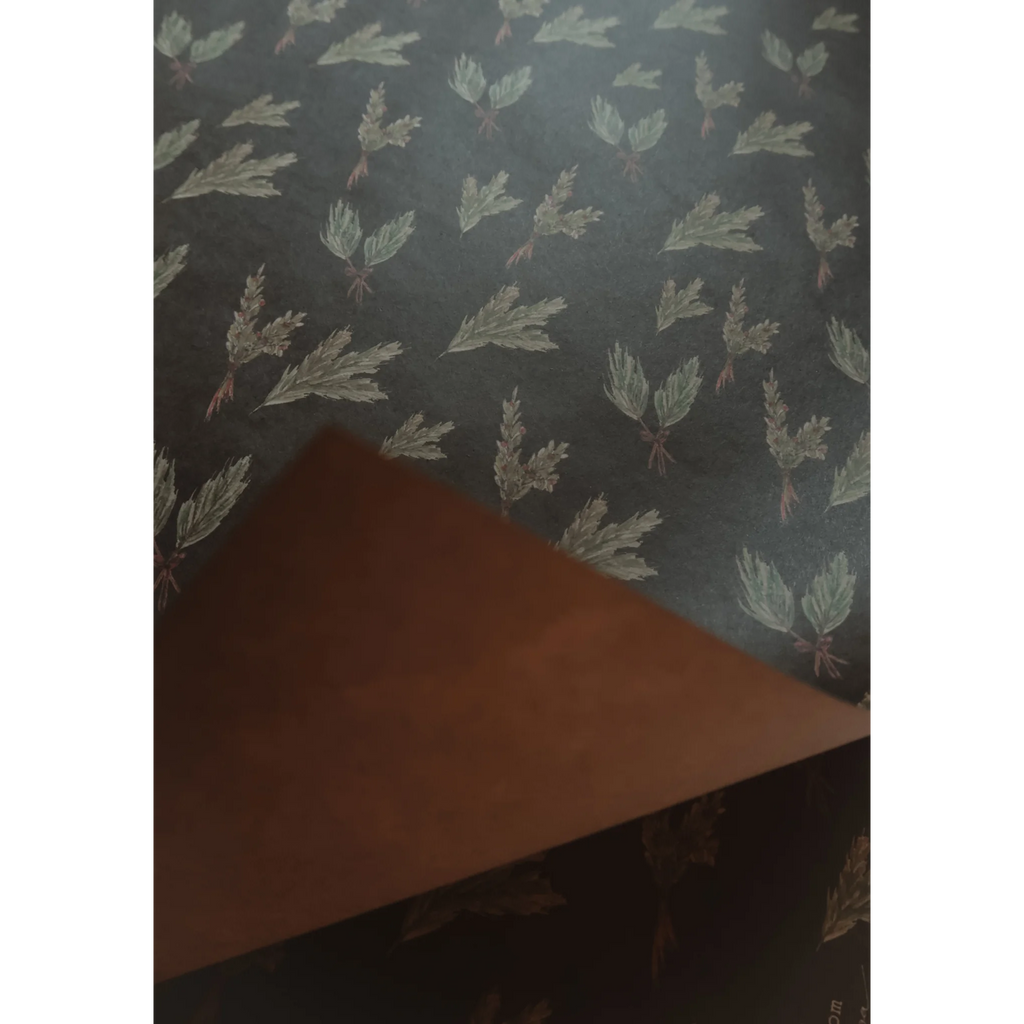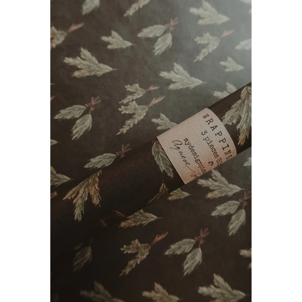 Set de 3 papiers cadeaux kraft - Branches vertes