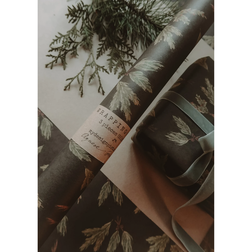 Set de 3 papiers cadeaux kraft -  Branches vertes