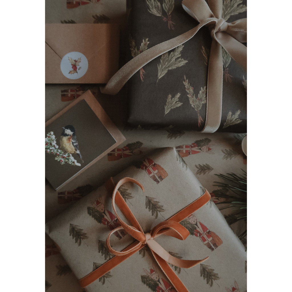 Ce papier cadeau de Noël est imprimé sur du papier kraft recyclé brun de 70 g/m².