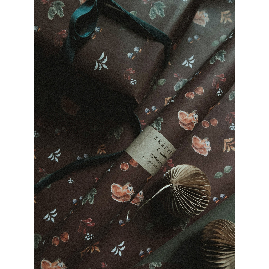 Set de 3 papiers cadeaux kraft -  Noël floral marron