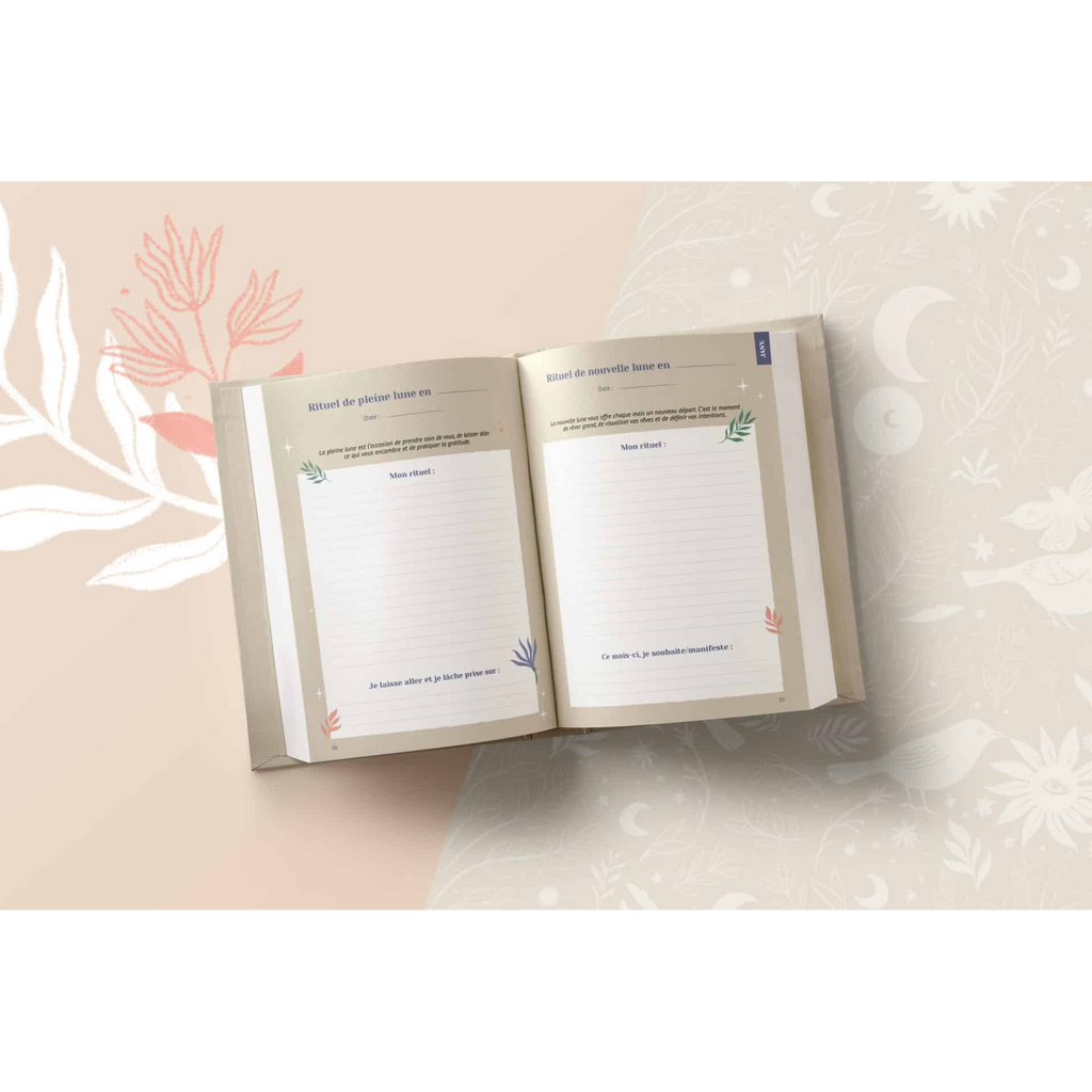 Dans l’agenda Womoon, de nombreuses propositions de rituels sont là pour vous encourager à prendre du temps pour vous. Vous allez pouvoir : manifester tous vos rêves en début d’année & clôturer l’année dans la gratitude, célébrer chaque pleine lune et nouvelle lune… Mais aussi noter vos souvenirs et intentions au passage de chaque mois et honorer les solstices et équinoxes.