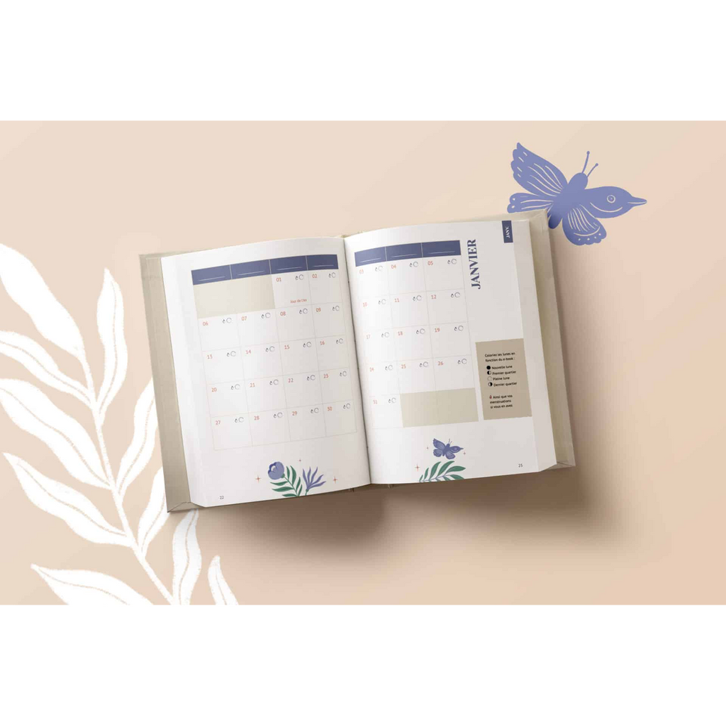 En plus du contenu Womoon, retrouvez chaque mois une double-page avec une vue sur le mois, et une double page par semaine avec un contenu épuré pour en faire un véritable outil de travail. Et encore plein de surprises : des citations inspirantes, des tirages d’oracle, des coloriages d’archétypes féminins puissants, des illustrations et citations inspirantes pour chaque mois… à découvrir dans votre agenda !