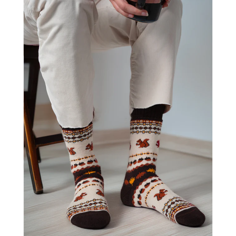Au milieu du bruissement des feuilles d’automne, alors que le sol de la forêt se pare d’un tapis aux teintes brunes et orangées, le motif Ekorn prend vie. Un écureuil espiègle, aux yeux brillants comme des marrons, serre contre son cœur une précieuse noisette. Sur un fond de tons ocres, cette scène fantaisiste se déploie, invitant celui qui la porte à s’aventurer à travers les royaumes sylvestres où la curiosité règne en maître.