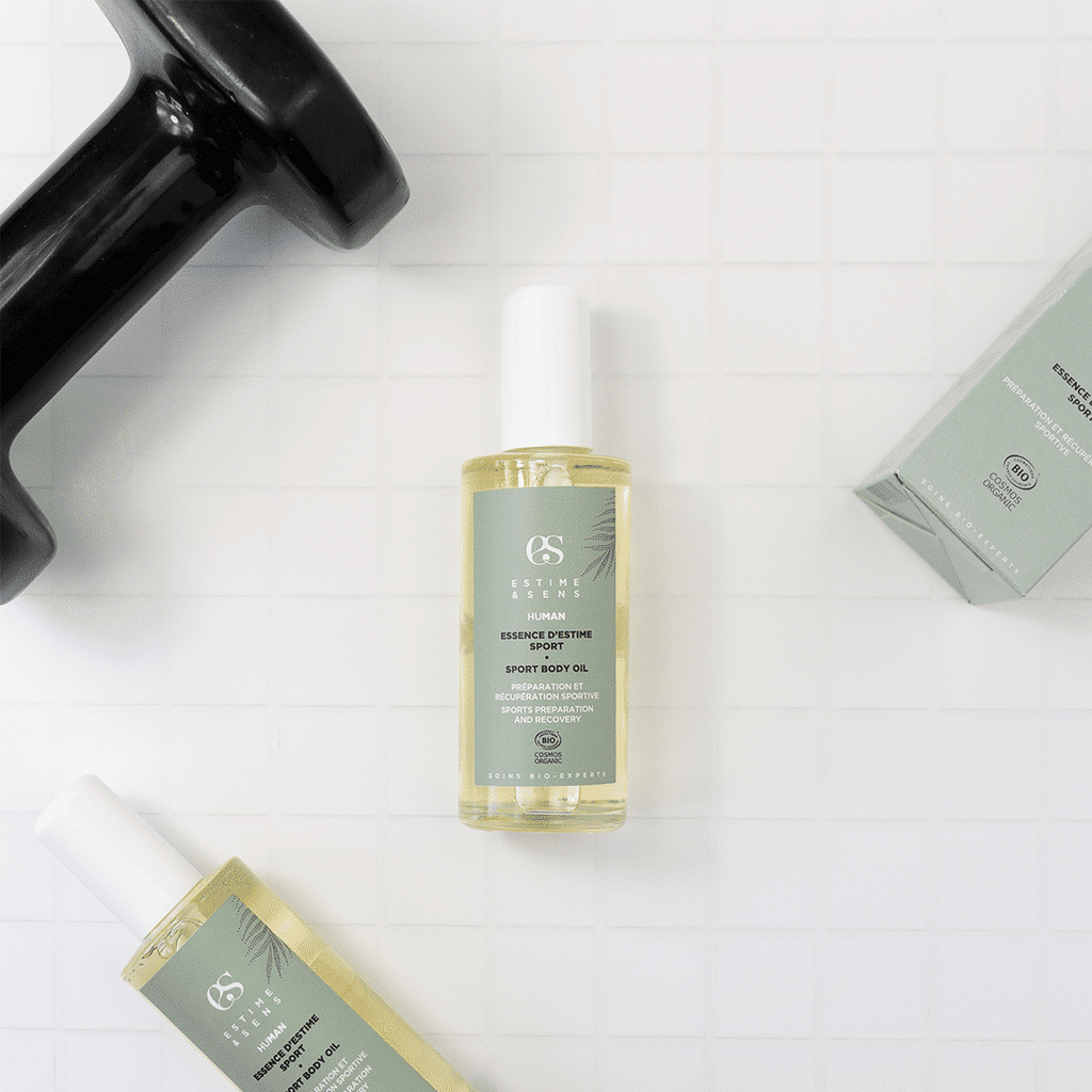 Votre cadeau : la miniature de l'essence d'estime sport. Cette huile de préparation et de récupération sportive apaise les tensions musculaires accumulées et revitalise le corps et l’esprit.