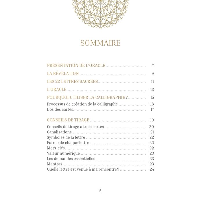 L'Oracle des 22 lettres sacrées a été conçu pour vous permettre de plonger dans la sagesse et la dimension mystérieuse de ces lettres sacrées. Chacune d'entre elles détient un pouvoir et une grande signification, qui résonnent à la fois de manière visible et invisible. Ces lettres sont porteuses d'une profondeur infinie, nous guidant vers une meilleure compréhension de nous-mêmes et du monde qui nous entoure. L'Oracle des 22 lettres sacrées nous invite à revenir dans notre corps, notre cœur et notre présence. C'est à travers cette connexion profonde que nous pouvons véritablement découvrir et nous connecter à la sagesse qu'elles renferment.